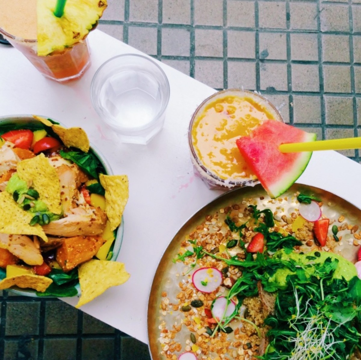 The first time we went to Brunch and Cake to have lunch. We both choose a delicious organic juice, Mark went for the avocado toast and I had a salad of mango and chicken with a mustard and orange vinaigrette. Filling, yet light, original and complementary flavors, one bite more colorful than the other: mind-blowing!